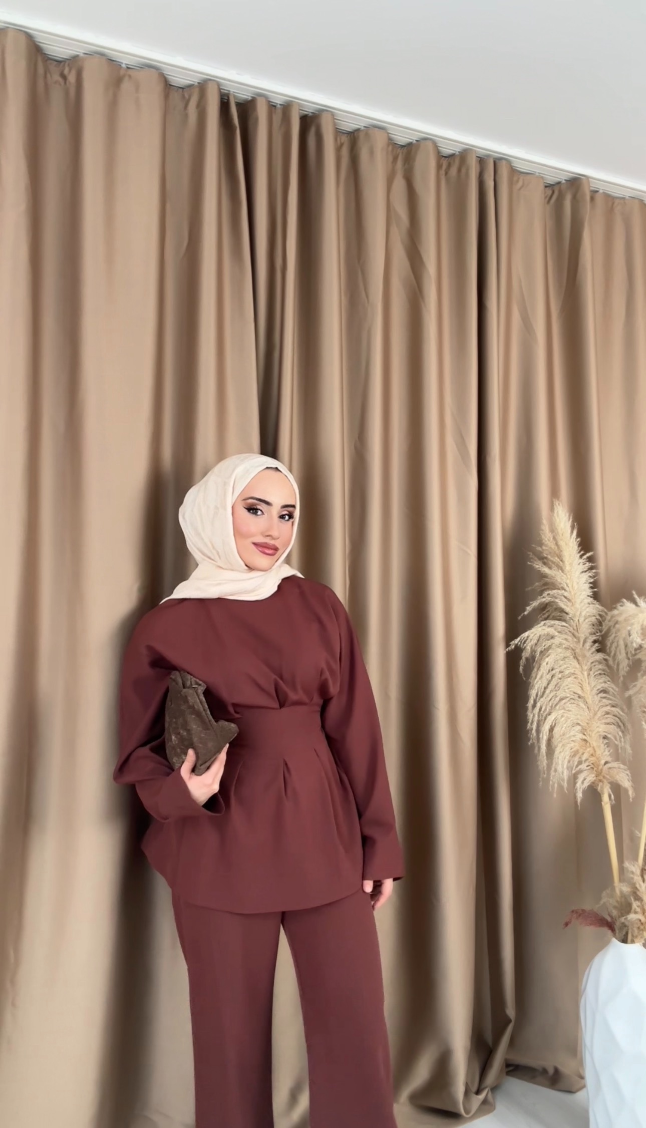 PİLE DETAYLI BLUZ TOPRAK PANTOLON TAKIM ÖZELLİKLERİ